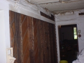 started taking down the ceiling, cutting off the wainscoting at the edge of the
